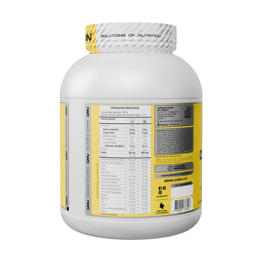 Es un alimento a base de carbohidratos y proteína concentrada de suero, enriquecido con glutamina y aminoácidos esenciales (Leucina, Isoleucina, Valina), ideal para quienes buscan una alimentación rica en calorías, con un mayor contenido nutricional de proteínas y carbohidratos. Su sabor Vainilla Gourmet lo convierte en una opción deliciosa para complementar tu dieta.